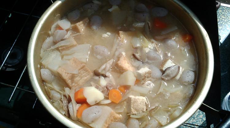 急遽、空き缶に箸を差して即席お玉としました(苦笑)