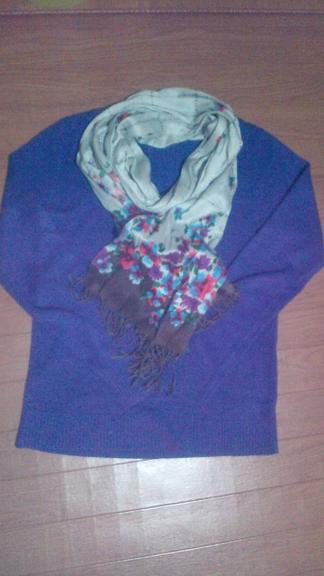 紫のニットと小花柄のショール(^-^)
