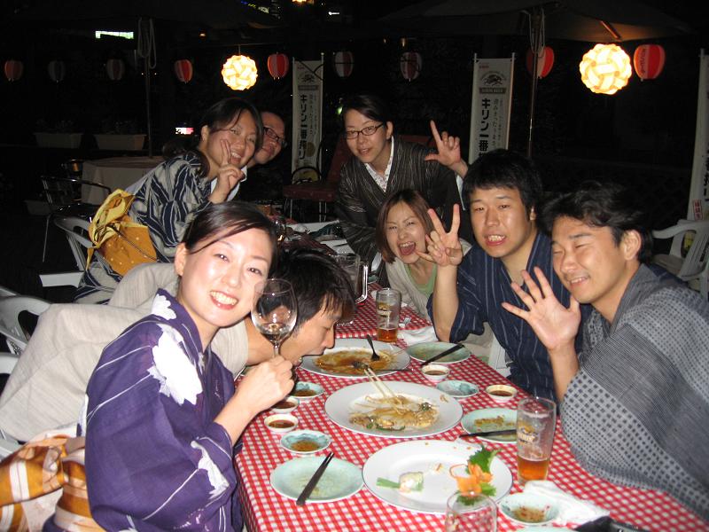 仕事帰りの人は洋服で参加、甚兵衛を用意してる人も居たり。