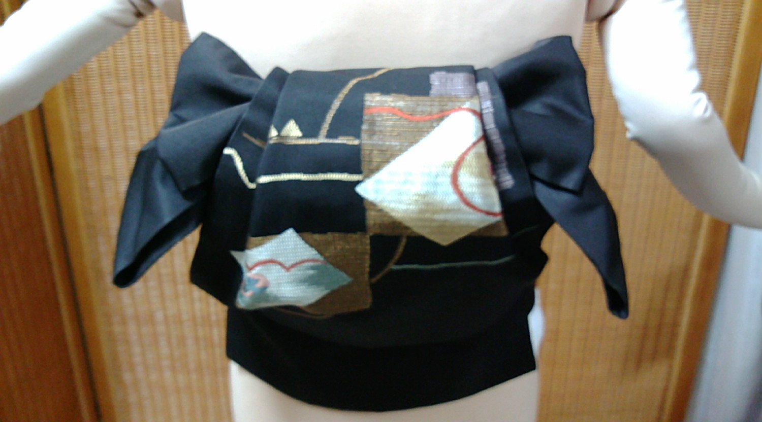 スタンダードなお太鼓を結ぼうとしたらツイツイ半巾帯の手癖のまま胴体に巻こうとしてしまったよ…(自爆)