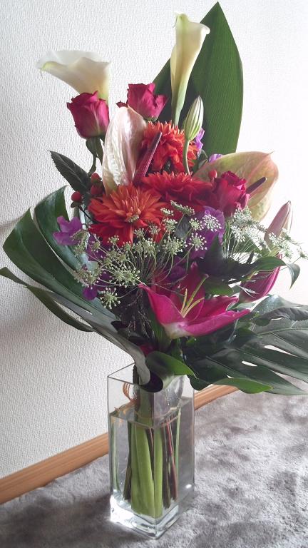 打ち上げの最中に結婚祝いで皆から花束を頂きました(〃▽〃)
